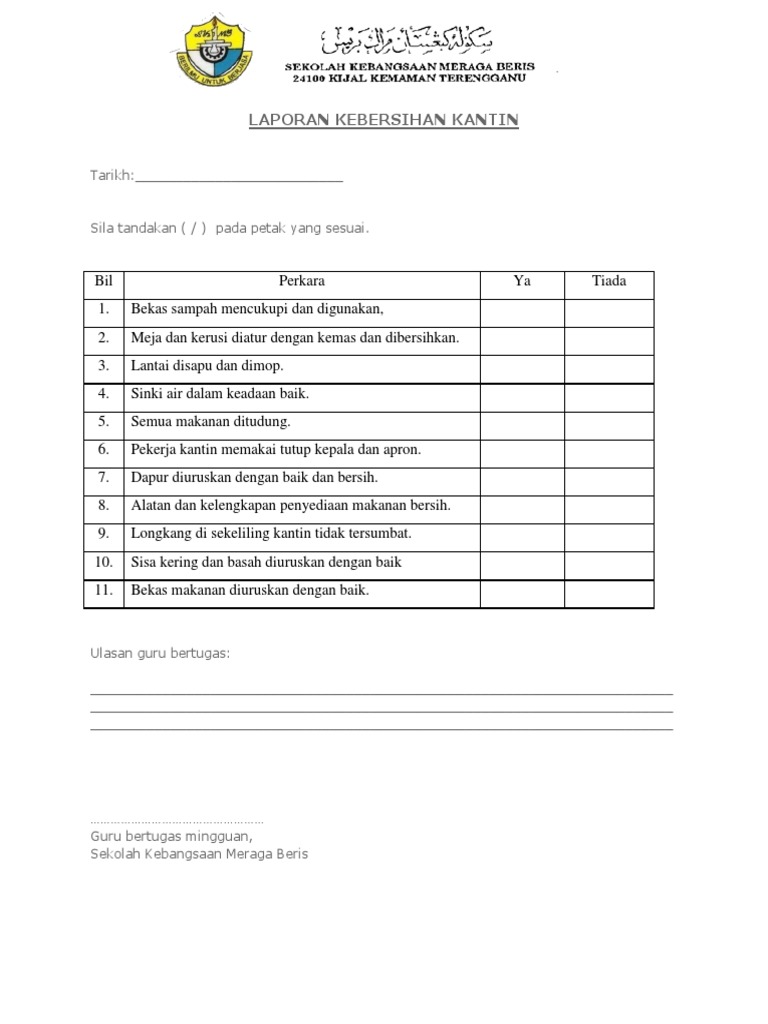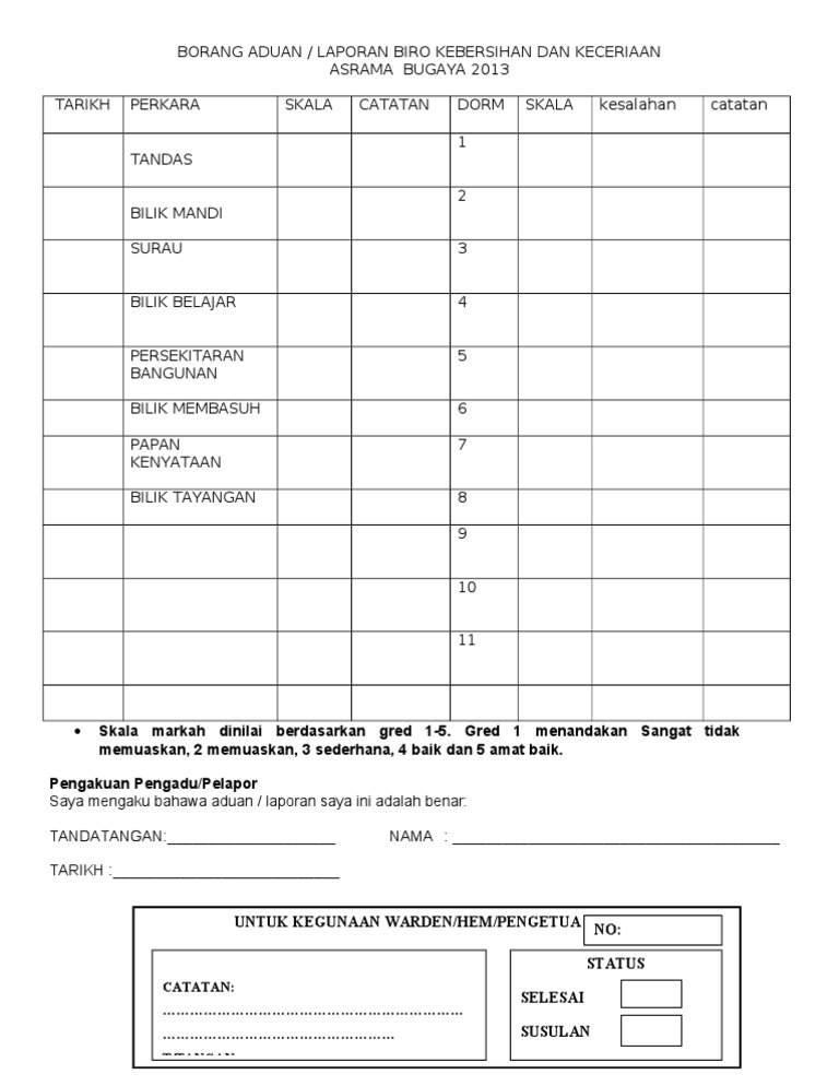 Salinan Surat Kahwin bagi isteri 1 Keping. Demikianlah beberapa ulasan artikel tentang contoh borang laporan kebersihan yang dapat Anda jadikan referensi untuk mengetahui lebih jauh mengenai contoh borang laporan kebersihan. 12 Contoh Teks Laporan Hasil Observasi Lingkungan Alam Sekolah.